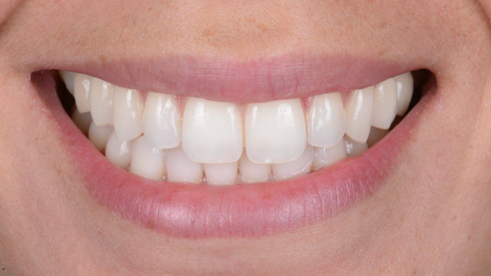 Mme Q., 36 ans, professeure de lycée, souhaitait améliorer l’esthétique de son sourire. Elle n’aimait pas la teinte de ses dents, qu’elle trouvait trop foncée, et souffrait de l’absence de deux dents.
