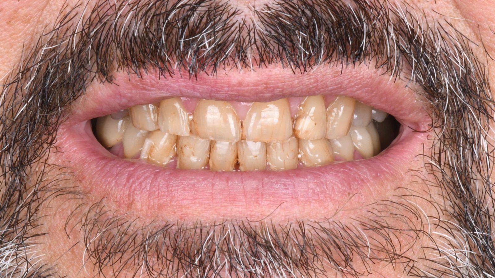 M. L., 62 ans, serveur proche de la retraite, souffrait d'une usure dentaire avancée liée au bruxisme et à des dents gravement abîmées. En plus de la perte de dents, il présentait des problèmes esthétiques importants, avec des dents mobiles, infectées et des gencives enflammées, impactant sa mastication et son sourire.